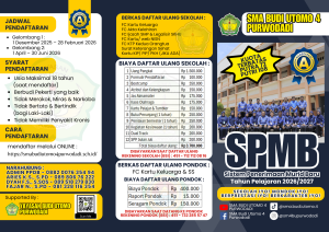 LINK PENDAFTARAN ( https://tinyurl.com/spmbsm4bu26-27 ) Assalamu’alaikum Wr. Wb. Perkembangan dunia pendidikan di Indonesia tidak terlepas dari pengaruh perubahan global, perkembangan ilmu pengetahuan dan teknologi, yang sering kita sebut era digital Pengaruh ini menuntut perubahan dan peningkatan pendidikan, termasuk pendidikan di SMA Budi Utomo 4 Purwodadi dalam menyiapkan generasi bangsa untuk mewujudkan Sumber Daya Manusia yang Profesional Religius. Salah …