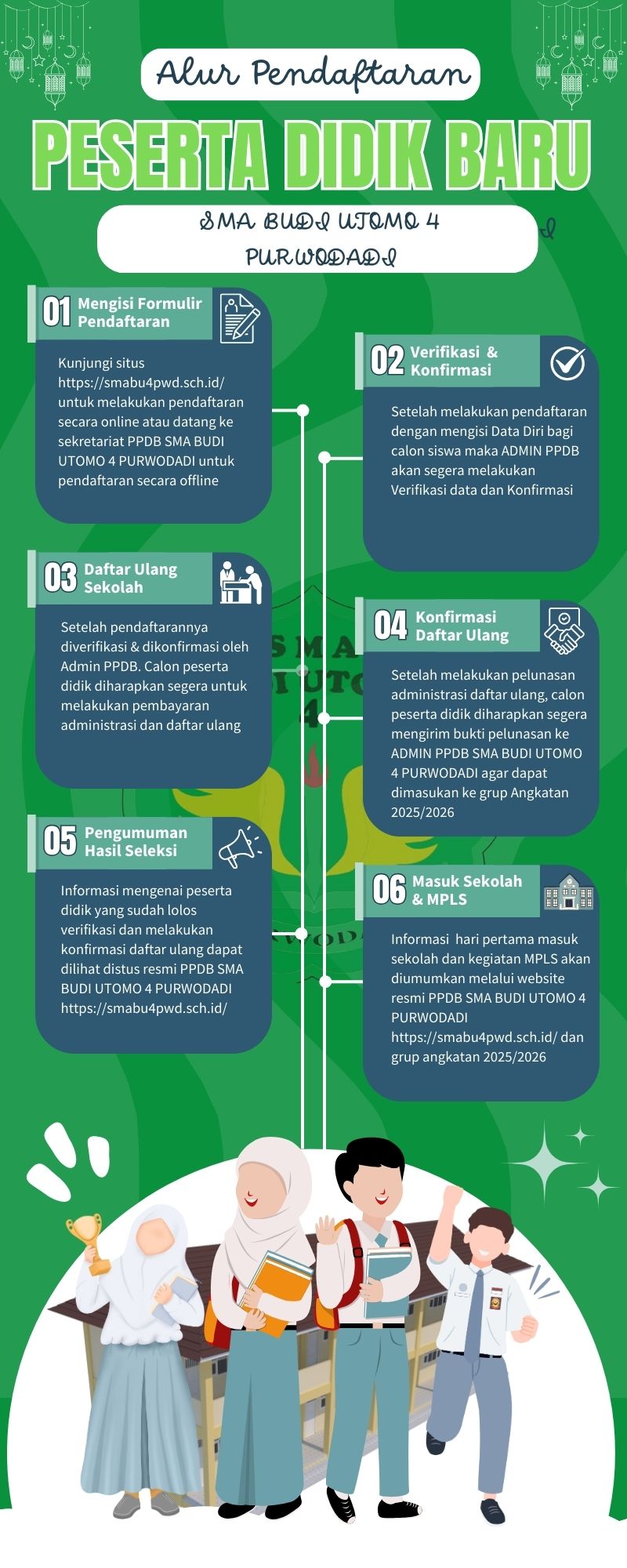 Salah satu upaya peningkatan mutu di SMA Budi Utomo 4 Purwodadi, dengan menyelenggarakan Pendaftaran Peserta Didik Baru (PPDB) tahun pelajaran 2025/2026 secara Online melalui website